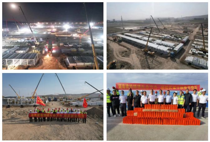 据悉,9月1日,湖南建投集团紧急受领任务,迅速响应,快速部署,成立项目建设工作领导小组,由集团领导亲自挂帅,下设办公室,组建六个工作组,指派集团基础设施投资公司组织集团在疆各单位参与实施。工期短,任务重,一场与时间赛跑、同疫情竞速、抢建方舱的战役快速打响。截至9月9日,项目已到位576人,其中管理人员84人,作业人员492人,到位机械86台;房建工程基础验槽已全部完成,筏板基础浇筑已完成26个,占比72%;已到场450套板房,已安装完成112间隔离用房,占比10%。项目现场人、材、机、料忙而有序,挖机、铲车、吊车等大型机械同时作业,工人们三班倒24小时施工,确保按时保质保量地完成建设任务。