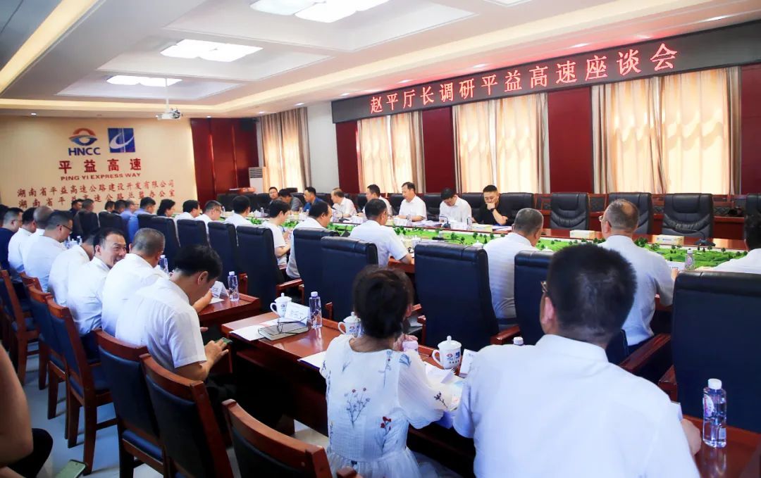 随后在平益公司召开项目建设座谈会,听取项目建设单位及沿线地方政府有关工作情况汇报和建议。赵平指出,平益高速是省政府今年要重点抓好的十大基础设施项目之一,对推动湘赣边区域合作示范区建设、湘赣边革命老区融入长江经济带发展具有重要意义,一定要深入贯彻落实习近平总书记重要指示精神,把项目打造成“精品工程、样板工程、平安工程、廉洁工程”,以优异成绩向党的二十大献礼。他强调,要继续抢抓施工黄金期,科学组织,精益求精,高标准建设好平益高速,圆满完成各项目标任务;要强化“路地共建”,项目和地方党委政府要加强沟通协调,为项目建设营造良好的施工环境。会议就服务区用地加征、连接线建设、设计时速提速、可视山体绿化等问题进行了调度安排。